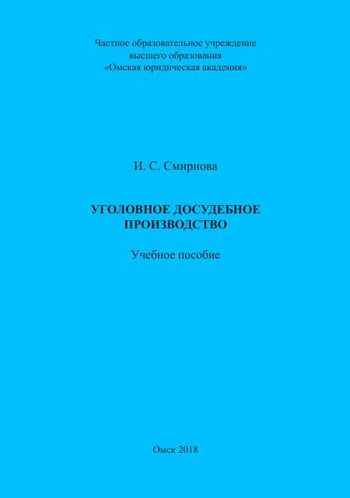 Смирнова, И. С. Уголовное досудебное производство : учебное пособие / И. С. Смирнова. — Омск : Омская юридическая академия, 2018. — 84 c. — ISBN 978-5-98065-174-9. — Текст : электронный // Цифровой образовательный ресурс IPR SMART : [сайт]. — URL: https://www.iprbookshop.ru/128470.html (дата обращения: 01.03.2023). — Режим доступа: для авторизир. пользователей