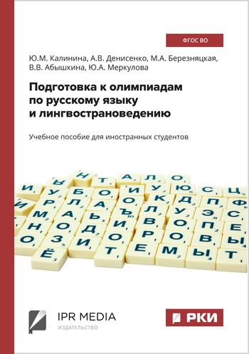 Подготовка к олимпиадам по русскому языку и лингвострановедению : учебное пособие для иностранных студентов / Ю. М. Калинина, А. В. Денисенко, М. А. Березняцкая [и др.]. — Москва : Ай Пи Ар Медиа, 2023. — 100 c. — ISBN 978-5-4497-2098-6. — Текст : электронный // Цифровой образовательный ресурс IPR SMART : [сайт]. — URL: https://www.iprbookshop.ru/129056.html (дата обращения: 17.03.2023). — Режим доступа: для авторизир. пользователей