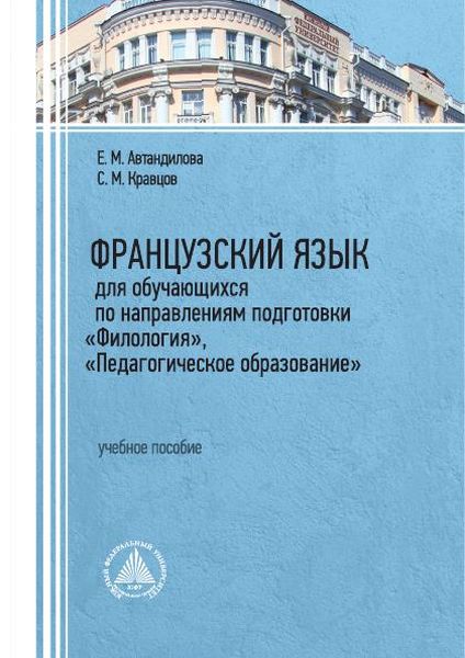Автандилова, Е. М. Французский язык для обучающихся по направлениям подготовки «Филология», «Педагогическое образование» : учебное пособие / Е. М. Автандилова, С. М. Кравцов. — Ростов-на-Дону, Таганрог : Издательство Южного федерального университета, 2022. — 106 c. — ISBN 978-5-9275-4248-2. — Текст : электронный // Цифровой образовательный ресурс IPR SMART : [сайт]. — URL: https://www.iprbookshop.ru/129112.html (дата обращения: 22.03.2023). — Режим доступа: для авторизир. пользователей