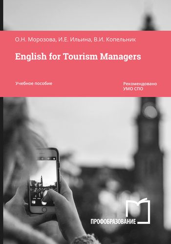 Морозова, О. Н. English for Tourism Managers : учебное пособие для СПО / О. Н. Морозова, И. Е. Ильина, В. И. Копельник. — Саратов, Москва : Профобразование, Ай Пи Ар Медиа, 2023. — 162 c. — ISBN 978-5-4488-1630-7, 978-5-4497-2126-6. — Текст : электронный // Цифровой образовательный ресурс IPR SMART : [сайт]. — URL: https://www.iprbookshop.ru/129182.html (дата обращения: 31.03.2023). — Режим доступа: для авторизир. пользователей