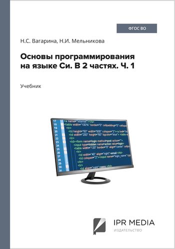 Вагарина, Н. С. Основы программирования на языке Си. В 2 частях. Ч. 1 : учебник / Н. С. Вагарина, Н. И. Мельникова. — Москва : Ай Пи Ар Медиа, 2022. — 242 c. — ISBN 978-5-4497-2109-9 (ч. 1), 978-5-4497-2108-2. — Текст : электронный // Цифровой образовательный ресурс IPR SMART : [сайт]. — URL: https://www.iprbookshop.ru/129190.html (дата обращения: 11.06.2024). — Режим доступа: для авторизир. пользователей