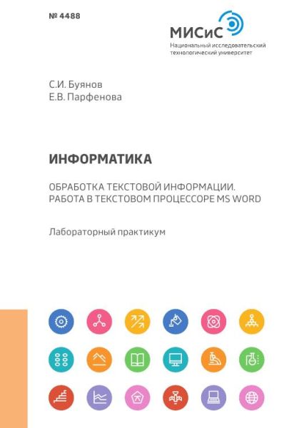 Буянов, С. И. Информатика. Обработка текстовой информации. Работа в текстовом процессоре MS Word : лабораторный практикум / С. И. Буянов, Е. В. Парфенова. — Москва : Издательский Дом МИСиС, 2021. — 46 c. — Текст : электронный // Цифровой образовательный ресурс IPR SMART : [сайт]. — URL: https://www.iprbookshop.ru/129736.html (дата обращения: 20.04.2023). — Режим доступа: для авторизир. пользователей