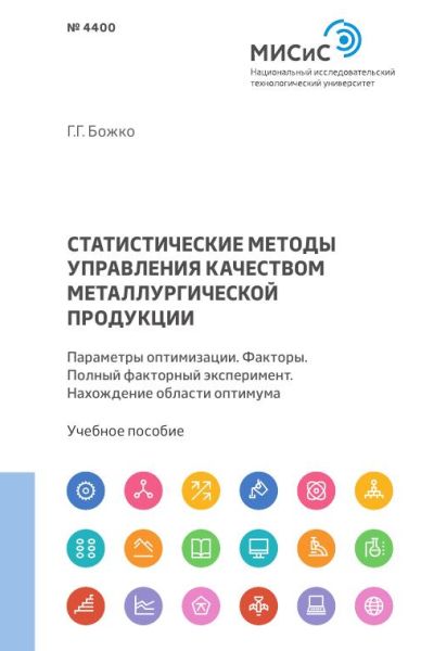 Божко, Г. Г. Статистические методы управления качеством металлургической продукции. Параметры оптимизации. Факторы. Полный факторный эксперимент. Нахождение области оптимума : учебное пособие / Г. Г. Божко. — Москва : Издательский Дом МИСиС, 2021. — 70 c. — ISBN 978-5-907227-76-7. — Текст : электронный // Цифровой образовательный ресурс IPR SMART : [сайт]. — URL: https://www.iprbookshop.ru/129760.html (дата обращения: 21.04.2023). — Режим доступа: для авторизир. пользователей