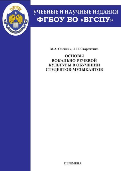 Олейник, М. А. Основы вокально-речевой культуры в обучении студентов-музыкантов : учебное пособие / М. А. Олейник, Л. Н. Стороженко. — Волгоград : Волгоградский государственный социально-педагогический университет, «Перемена», 2023. — 96 c. — ISBN 978-5-9935-0449-0. — Текст : электронный // Цифровой образовательный ресурс IPR SMART : [сайт]. — URL: https://www.iprbookshop.ru/130011.html (дата обращения: 28.04.2023). — Режим доступа: для авторизир. пользователей