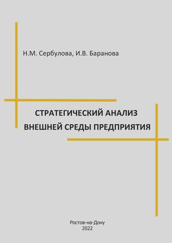 Сербулова, Н. М. Стратегический анализ внешней среды предприятия : учебное пособие / Н. М. Сербулова, И. В. Баранова. — Ростов-на-Дону : Донской государственный технический университет, 2022. — 42 c. — ISBN 978-5-7890-2064-7. — Текст : электронный // Цифровой образовательный ресурс IPR SMART : [сайт]. — URL: https://www.iprbookshop.ru/130423.html (дата обращения: 26.05.2023). — Режим доступа: для авторизир. пользователей