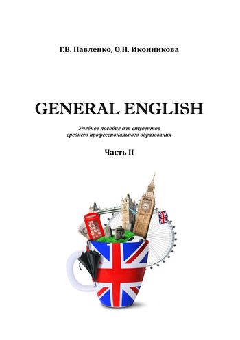Павленко, Г. В. General English. Ч.II : учебное пособие для студентов среднего профессионального образования / Г. В. Павленко, О. Н. Иконникова. — Таганрог : Таганрогский институт управления и экономики, 2022. — 128 c. — Текст : электронный // Цифровой образовательный ресурс IPR SMART : [сайт]. — URL: https://www.iprbookshop.ru/130713.html (дата обращения: 08.06.2023). — Режим доступа: для авторизир. пользователей