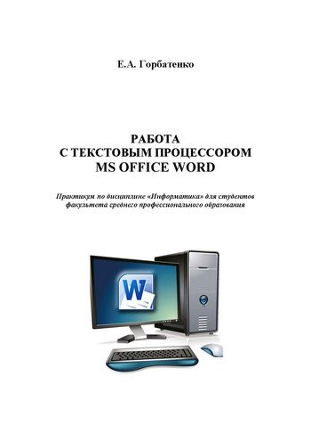Горбатенко, Е. А. Работа с текстовым процессором MS OFFICE WORD : практикум по дисциплине «Информатика» для студентов факультета среднего профессионального образования / Е. А. Горбатенко. — Таганрог : Таганрогский институт управления и экономики, 2022. — 124 c. — Текст : электронный // Цифровой образовательный ресурс IPR SMART : [сайт]. — URL: https://www.iprbookshop.ru/130731.html (дата обращения: 08.06.2023). — Режим доступа: для авторизир. пользователей