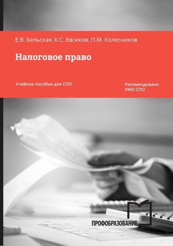 Бельская Е.В. Налоговое право : учебное пособие для СПО / Бельская Е.В., Евсиков К.С., Колесников П.М.. — Саратов, Москва : Профобразование, Ай Пи Ар Медиа, 2023. — 208 c. — ISBN 978-5-4488-1644-4, 978-5-4497-2218-8. — Текст : электронный // Цифровой образовательный ресурс IPR SMART : [сайт]. — URL: https://www.iprbookshop.ru/130792.html (дата обращения: 19.12.2025). — Режим доступа: для авторизир. пользователей