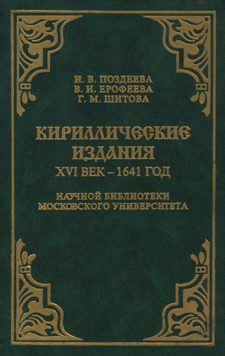 Поздеева И.В. Кириллические издания. XVI век — 1641 г. Находки археографических экспедиций 1971-1993 годов, поступившие в Научную библиотеку Московского университета / Поздеева И.В., Ерофеева В.И., Шитова Г.М.. — Москва : Московский государственный университет имени М.В. Ломоносова, 2000. — 416 c. — ISBN 5-211-03953-Х. — Текст : электронный // Цифровой образовательный ресурс IPR SMART : [сайт]. — URL: https://www.iprbookshop.ru/13087.html (дата обращения: 05.12.2025). — Режим доступа: для авторизир. пользователей