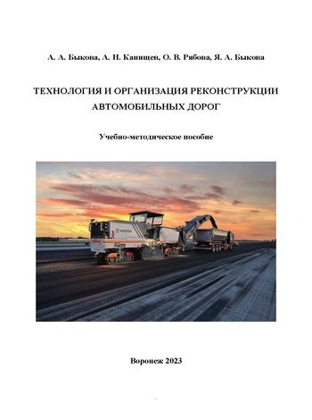 Технология и организация реконструкции автомобильных дорог : учебно-методическое пособие / А. А. Быкова, А. Н. Канищев, О. В. Рябова, Я. А. Быкова. — 3-е изд. — Воронеж : Воронежский государственный технический университет, ЭБС АСВ, 2023. — 133 c. — ISBN 978-5-7731-1084-2. — Текст : электронный // Цифровой образовательный ресурс IPR SMART : [сайт]. — URL: https://www.iprbookshop.ru/131032.html (дата обращения: 19.06.2023). — Режим доступа: для авторизир. пользователей