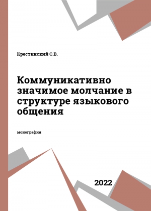 Крестинский, С. В. Коммуникативно значимое молчание в структуре языкового общения / С. В. Крестинский. — Тверь : Тверской государственный университет, 2022. — 252 c. — ISBN 978-5-7609-1704-1. — Текст : электронный // Цифровой образовательный ресурс IPR SMART : [сайт]. — URL: https://www.iprbookshop.ru/131247.html (дата обращения: 25.06.2023). — Режим доступа: для авторизир. пользователей
