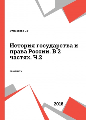 Бузмакова О.Г. История государства и права России. В 2 частях. Ч.2 : практикум / Бузмакова О.Г.. — Новосибирск : Новосибирский государственный университет, 2018. — 52 c. — ISBN 978-5-4437-0776-1, 978-5-4437-0778-5 (ч.2). — Текст : электронный // Цифровой образовательный ресурс IPR SMART : [сайт]. — URL: https://www.iprbookshop.ru/131532.html (дата обращения: 06.12.2025). — Режим доступа: для авторизир. пользователей