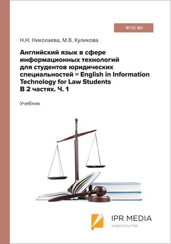 Николаева, Н. Н. Английский язык в сфере информационных технологий для студентов юридических специальностей = English in Information Technology for Law Students. В 2 частях. Ч. 1 : учебник / Н. Н. Николаева, М. В. Куликова. — Москва : Ай Пи Ар Медиа, 2023. — 190 c. — ISBN 978-5-4497-2210-2 (ч. 1), 978-5-4497-2368-0. — Текст : электронный // Цифровой образовательный ресурс IPR SMART : [сайт]. — URL: https://www.iprbookshop.ru/131639.html (дата обращения: 31.10.2023). — Режим доступа: для авторизир. пользователей