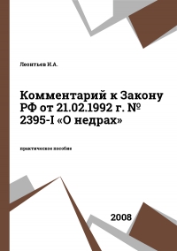 Леонтьев, И. А. Комментарий к Закону РФ от 21.02.1992 г. № 2395-I «О недрах» / И. А. Леонтьев. — Москва : Новая правовая культура, 2008. — 355 c. — Текст : электронный // Цифровой образовательный ресурс IPR SMART : [сайт]. — URL: https://www.iprbookshop.ru/1320.html (дата обращения: 01.12.2025). — Режим доступа: для авторизир. пользователей
