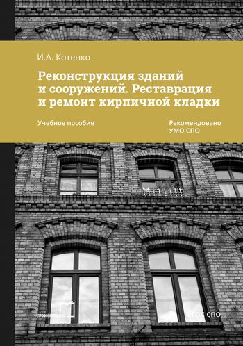 Котенко, И. А. Реконструкция зданий и сооружений. Реставрация и ремонт кирпичной кладки : учебное пособие для СПО / И. А. Котенко. — Саратов : Профобразование, 2023. — 100 c. — ISBN 978-5-4488-1282-8. — Текст : электронный // Цифровой образовательный ресурс IPR SMART : [сайт]. — URL: https://www.iprbookshop.ru/132423.html (дата обращения: 17.08.2023). — Режим доступа: для авторизир. пользователей