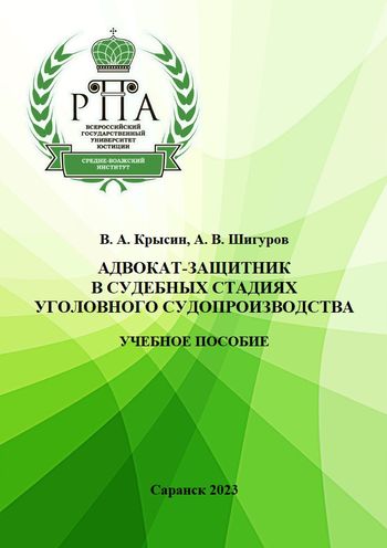 Крысин В.А. Адвокат-защитник в судебных стадиях уголовного судопроизводства : учебное пособие / Крысин В.А., Шигуров А.В.. — Саранск : Средне-Волжский институт (филиал) ВГУЮ (РПА Минюста России), 2023. — 250 c. — ISBN 978-5-6047091-9-1. — Текст : электронный // Цифровой образовательный ресурс IPR SMART : [сайт]. — URL: https://www.iprbookshop.ru/132635.html (дата обращения: 20.12.2025). — Режим доступа: для авторизир. пользователей
