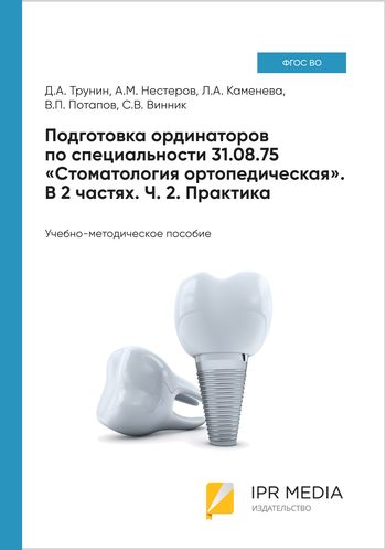 Подготовка ординаторов по специальности 31.08.75 «Стоматология ортопедическая». В 2 частях. Ч. 2. Практика : учебно-методическое пособие / Д. А. Трунин, А. М. Нестеров, Л. А. Каменева [и др.]. — Москва : Ай Пи Ар Медиа, 2023. — 190 c. — ISBN 978-5-4497-2316-1 (ч. 2), 978-5-4497-2288-1. — Текст : электронный // Цифровой образовательный ресурс IPR SMART : [сайт]. — URL: https://www.iprbookshop.ru/133104.html (дата обращения: 06.10.2023). — Режим доступа: для авторизир. пользователей