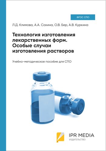 Технология изготовления лекарственных форм. Особые случаи изготовления растворов : учебно-методическое пособие для СПО / Л. Д. Климова, А. А. Сохина, О. В. Бер, А. В. Куркина. — Москва : Ай Пи Ар Медиа, 2023. — 63 c. — ISBN 978-5-4497-2293-5. — Текст : электронный // Цифровой образовательный ресурс IPR SMART : [сайт]. — URL: https://www.iprbookshop.ru/133113.html (дата обращения: 20.09.2023). — Режим доступа: для авторизир. пользователей