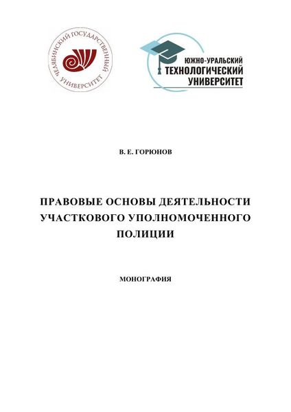 Горюнов В.Е. Правовые основы деятельности участкового уполномоченного полиции : монография / Горюнов В.Е.. — Челябинск : Южно-Уральский технологический университет, 2023. — 447 c. — ISBN 978-5-6048829-8-6. — Текст : электронный // Цифровой образовательный ресурс IPR SMART : [сайт]. — URL: https://www.iprbookshop.ru/133120.html (дата обращения: 06.12.2025). — Режим доступа: для авторизир. пользователей