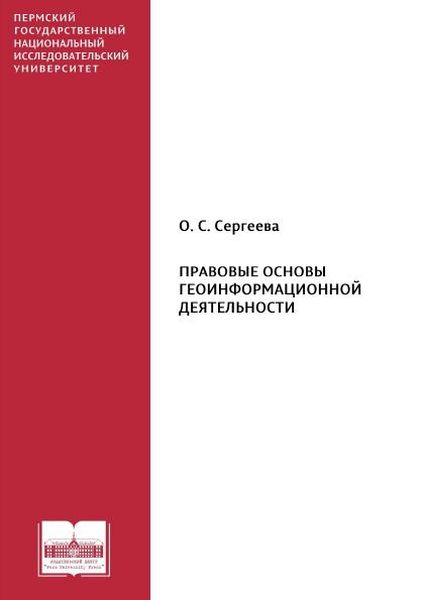 Сергеева, О. С. Правовые основы геоинформационной деятельности : учебное пособие / О. С. Сергеева. — Пермь : Пермский государственный национальный исследовательский университет, 2022. — 114 c. — ISBN 978-5-7944-3794-2. — Текст : электронный // Цифровой образовательный ресурс IPR SMART : [сайт]. — URL: https://www.iprbookshop.ru/133280.html (дата обращения: 26.09.2023). — Режим доступа: для авторизир. пользователей