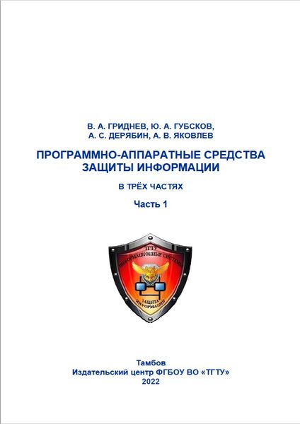 Программно-аппаратные средства защиты информации. В 3 частях. Ч.1 : учебное пособие / В. А. Гриднев, Ю. А. Губсков, А. С. Дерябин, А. В. Яковлев. — Тамбов : Тамбовский государственный технический университет, ЭБС АСВ, 2022. — 81 c. — ISBN 978-5-8265-2464-0, 978-5-8265-2467-1 (ч.1). — Текст : электронный // Цифровой образовательный ресурс IPR SMART : [сайт]. — URL: https://www.iprbookshop.ru/133346.html (дата обращения: 28.09.2023). — Режим доступа: для авторизир. пользователей
