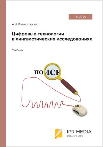 Колмогорова, А. В. Цифровые технологии в лингвистических исследованиях : учебник / А. В. Колмогорова. — Москва : Ай Пи Ар Медиа, 2024. — 177 c. — ISBN 978-5-4497-2373-4. — Текст : электронный // Цифровой образовательный ресурс IPR SMART : [сайт]. — URL: https://www.iprbookshop.ru/133468.html (дата обращения: 09.10.2023). — Режим доступа: для авторизир. пользователей