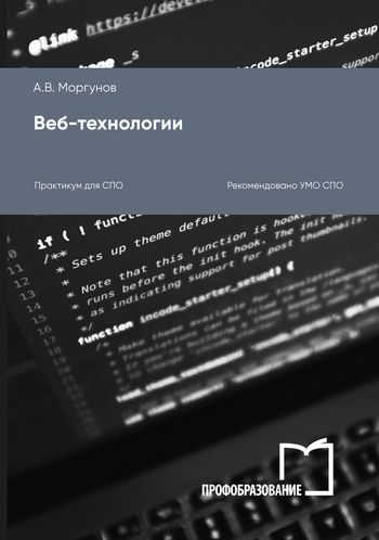 Моргунов, А. В. Веб-технологии : практикум для СПО / А. В. Моргунов. — Саратов : Профобразование, 2024. — 100 c. — ISBN 978-5-4488-1697-0. — Текст : электронный // Цифровой образовательный ресурс IPR SMART : [сайт]. — URL: https://www.iprbookshop.ru/133490.html (дата обращения: 09.10.2023). — Режим доступа: для авторизир. пользователей