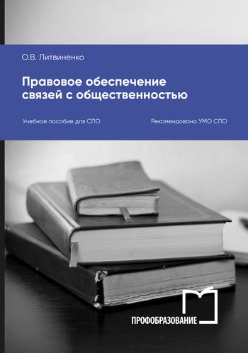 Литвиненко О.В. Правовое обеспечение связей с общественностью : учебное пособие для СПО / Литвиненко О.В.. — Саратов : Профобразование, 2024. — 111 c. — ISBN 978-5-4488-1693-2. — Текст : электронный // Цифровой образовательный ресурс IPR SMART : [сайт]. — URL: https://www.iprbookshop.ru/133496.html (дата обращения: 22.12.2025). — Режим доступа: для авторизир. пользователей