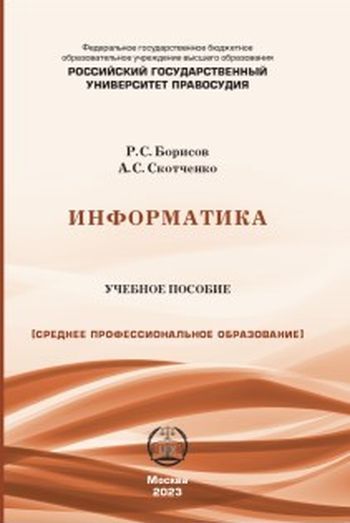 Борисов Р.С. Информатика : учебное пособие для среднего профессионального образования / Борисов Р.С., Скотченко А.С.. — Москва : Российский государственный университет правосудия, 2023. — 334 c. — ISBN 978-5-00209-051-8. — Текст : электронный // Цифровой образовательный ресурс IPR SMART : [сайт]. — URL: https://www.iprbookshop.ru/133635.html (дата обращения: 06.12.2025). — Режим доступа: для авторизир. пользователей