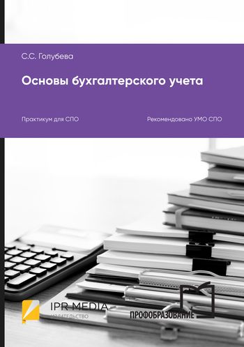 Голубева, С. С. Основы бухгалтерского учета : практикум для СПО / С. С. Голубева. — Саратов, Москва : Профобразование, Ай Пи Ар Медиа, 2023. — 168 c. — ISBN 978-5-4488-1718-2, 978-5-4497-2500-4. — Текст : электронный // Цифровой образовательный ресурс IPR SMART : [сайт]. — URL: https://www.iprbookshop.ru/134007.html (дата обращения: 15.11.2023). — Режим доступа: для авторизир. пользователей