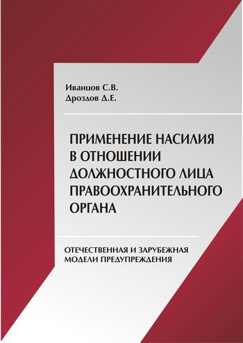 Иванцов, С. В. Применение насилия в отношении должностного лица правоохранительного органа (отечественная и зарубежная модели предупреждения) : монография / С. В. Иванцов, Д. Е. Дроздов. — Калуга : Калужский государственный университет им. К.Э. Циолковского, 2022. — 174 c. — ISBN 978-5-88725-649-8. — Текст : электронный // Цифровой образовательный ресурс IPR SMART : [сайт]. — URL: https://www.iprbookshop.ru/134010.html (дата обращения: 31.10.2023). — Режим доступа: для авторизир. пользователей