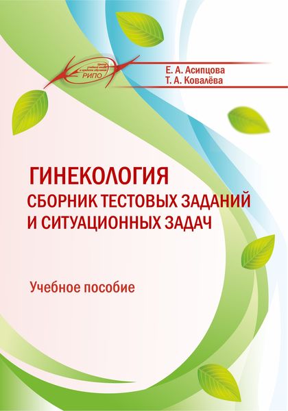 Асипцова, Е. А. Гинекология. Сборник тестовых заданий и ситуационных задач : учебное пособие / Е. А. Асипцова, Т. А. Ковалёва. — Минск : Республиканский институт профессионального образования (РИПО), 2021. — 80 c. — ISBN 978-985-7253-21-0. — Текст : электронный // Цифровой образовательный ресурс IPR SMART : [сайт]. — URL: https://www.iprbookshop.ru/134163.html (дата обращения: 06.11.2023). — Режим доступа: для авторизир. пользователей