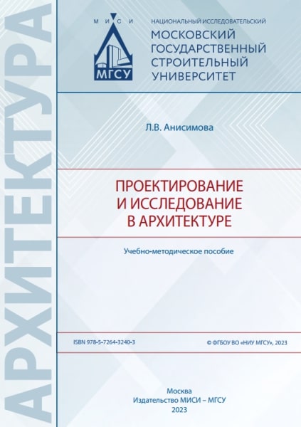 Анисимова, Л. В. Проектирование и исследование в архитектуре : учебно-методическое пособие / Л. В. Анисимова. — Москва : МИСИ-МГСУ, ЭБС АСВ, 2023. — 43 c. — ISBN 978-5-7264-3240-3. — Текст : электронный // Цифровой образовательный ресурс IPR SMART : [сайт]. — URL: https://www.iprbookshop.ru/134622.html (дата обращения: 28.11.2023). — Режим доступа: для авторизир. пользователей