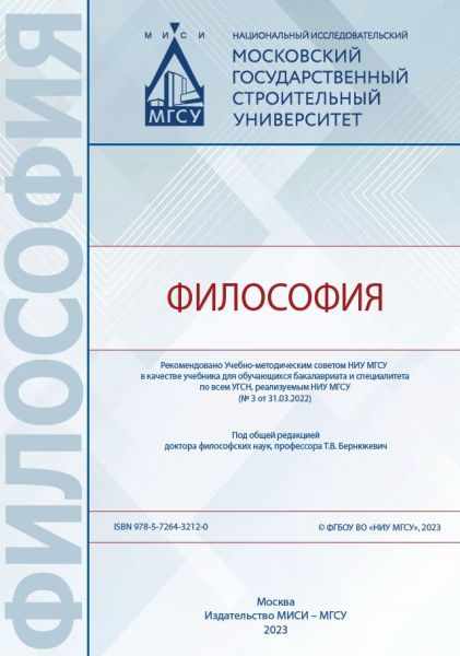 Философия : учебник для обучающихся бакалавриата и специалитета / Т.В. Бернюкевич [и др.].. — Москва : МИСИ-МГСУ, ЭБС АСВ, 2023. — 126 c. — ISBN 978-5-7264-3212-0. — Текст : электронный // Цифровой образовательный ресурс IPR SMART : [сайт]. — URL: https://www.iprbookshop.ru/134637.html (дата обращения: 15.12.2025). — Режим доступа: для авторизир. пользователей
