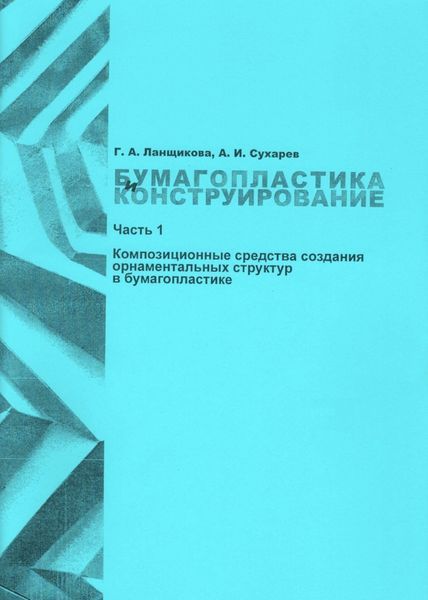 Ланщикова, Г. А. Бумагопластика и конструирование. В 3 частях. Ч.1. Композиционные средства создания орнаментальных структур в бумагопластике : учебное пособие / Г. А. Ланщикова, А. И. Сухарев. — Омск : Издательство ОмГПУ, 2023. — 90 c. — ISBN 978-5-8268-2357-6, 978-5-8268-2358-3 (ч.1). — Текст : электронный // Цифровой образовательный ресурс IPR SMART : [сайт]. — URL: https://www.iprbookshop.ru/134650.html (дата обращения: 29.11.2023). — Режим доступа: для авторизир. пользователей