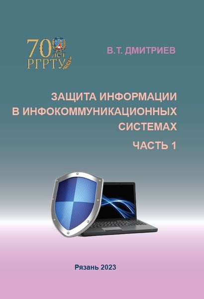 Дмитриев, В. Т. Защита информации в инфокоммуникационных системах. Ч.1 : учебное пособие / В. Т. Дмитриев. — Рязань : Рязанский государственный радиотехнический университет, 2023. — 160 c. — ISBN 978-5-7722-0370-5. — Текст : электронный // Цифровой образовательный ресурс IPR SMART : [сайт]. — URL: https://www.iprbookshop.ru/134852.html (дата обращения: 15.03.2024). — Режим доступа: для авторизир. пользователей