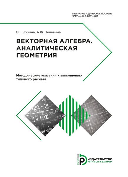 Зорина, И. Г. Векторная алгебра. Аналитическая геометрия : методические указания к выполнению типового расчета / И. Г. Зорина, А. Ф. Пелевина ; под редакцией И. Г. Зориной. — 2-е изд. — Москва : Московский государственный технический университет имени Н.Э. Баумана, 2017. — 80 c. — ISBN 978-5-7038-4582-0. — Текст : электронный // Цифровой образовательный ресурс IPR SMART : [сайт]. — URL: https://www.iprbookshop.ru/135298.html (дата обращения: 27.12.2023). — Режим доступа: для авторизир. пользователей