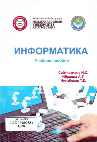Сейтказиева, И. С. Информатика : учебное пособие / И. С. Сейтказиева, А. Т. Ибраева, Т. К. Ниязбеков. — Бишкек : Международный университет Кыргызстана, 2022. — 151 c. — ISBN 978-9967-462-72-4. — Текст : электронный // Цифровой образовательный ресурс IPR SMART : [сайт]. — URL: https://www.iprbookshop.ru/135472.html (дата обращения: 12.01.2024). — Режим доступа: для авторизир. пользователей