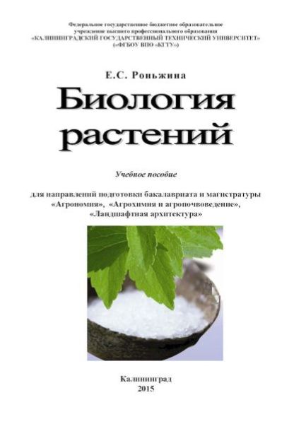 Роньжина, Е. С. Биология растений : учебное пособие для направлений подготовки бакалавриата и магистратуры «Агрономия», «Агрохимия и агропочвоведение», «Ландшафтная архитектура» / Е. С. Роньжина. — Калининград : Калининградский государственный технический университет, 2015. — 39 c. — Текст : электронный // Цифровой образовательный ресурс IPR SMART : [сайт]. — URL: https://www.iprbookshop.ru/135912.html (дата обращения: 24.01.2024). — Режим доступа: для авторизир. пользователей