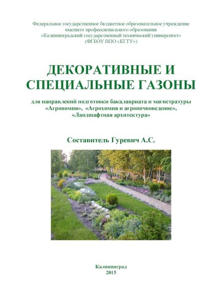 Декоративные и специальные газоны : учебное пособие для направлений подготовки бакалавриата и магистратуры «Агрономия», «Агрохимия и агропочвоведение», «Ландшафтная архитектура» / составители А. С. Гуревич. — Калининград : Калининградский государственный технический университет, 2015. — 32 c. — Текст : электронный // Цифровой образовательный ресурс IPR SMART : [сайт]. — URL: https://www.iprbookshop.ru/135914.html (дата обращения: 24.01.2024). — Режим доступа: для авторизир. пользователей