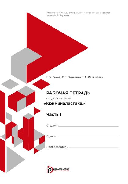 Вехов, В. Б. Рабочая тетрадь по дисциплине «Криминалистика». Ч.1 / В. Б. Вехов, О. Е. Зинченко, Т. А. Ильяшевич. — Москва : Московский государственный технический университет имени Н.Э. Баумана, 2017. — 64 c. — ISBN 978-5-7038-4768-8. — Текст : электронный // Цифровой образовательный ресурс IPR SMART : [сайт]. — URL: https://www.iprbookshop.ru/136051.html (дата обращения: 01.02.2024). — Режим доступа: для авторизир. пользователей