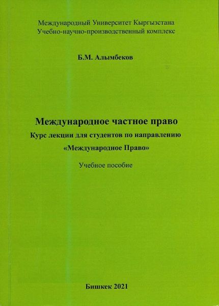 Алымбеков Б.М. Международное частное право. Курс лекции для студентов по направлению «Международное Право» : учебное пособие / Алымбеков Б.М.. — Бишкек : Международный университет Кыргызстана, 2021. — 86 c. — Текст : электронный // Цифровой образовательный ресурс IPR SMART : [сайт]. — URL: https://www.iprbookshop.ru/136076.html (дата обращения: 19.12.2025). — Режим доступа: для авторизир. пользователей