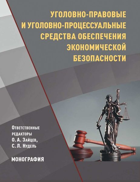 Уголовно-правовые и уголовно-процессуальные средства обеспечения экономической безопасности : монография / Е. В. Авдеева, С. А. Александров, Д. А. Басангов [и др.] ; под редакцией О. А. Зайцева, С. Л. Нуделя. — Москва : Юриспруденция, 2022. — 302 c. — ISBN 978-5-9516-0918-2. — Текст : электронный // Цифровой образовательный ресурс IPR SMART : [сайт]. — URL: https://www.iprbookshop.ru/136084.html (дата обращения: 02.02.2024). — Режим доступа: для авторизир. пользователей