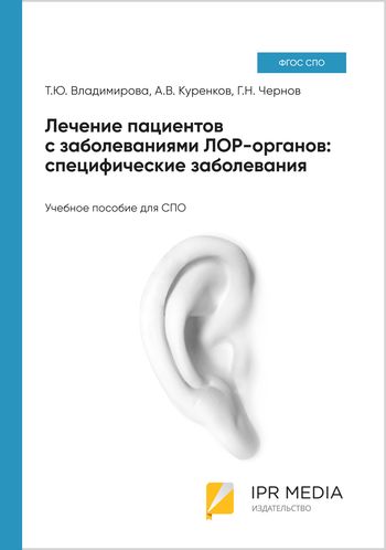 Владимирова, Т. Ю. Лечение пациентов с заболеваниями ЛОР-органов: специфические заболевания : учебное пособие для СПО / Т. Ю. Владимирова, А. В. Куренков, Г. Н. Чернов. — Москва : Ай Пи Ар Медиа, 2024. — 155 c. — ISBN 978-5-4497-2686-5. — Текст : электронный // Цифровой образовательный ресурс IPR SMART : [сайт]. — URL: https://www.iprbookshop.ru/136118.html (дата обращения: 20.02.2024). — Режим доступа: для авторизир. пользователей