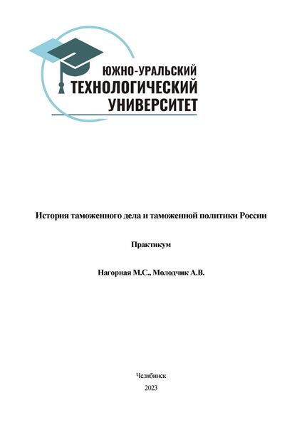 Нагорная, М. С. История таможенного дела и таможенной политики России : практикум / М. С. Нагорная, А. В. Молодчик. — Челябинск : Южно-Уральский технологический университет, 2023. — 82 c. — ISBN 978-5-6049938-7-3. — Текст : электронный // Цифровой образовательный ресурс IPR SMART : [сайт]. — URL: https://www.iprbookshop.ru/136679.html (дата обращения: 19.02.2024). — Режим доступа: для авторизир. пользователей