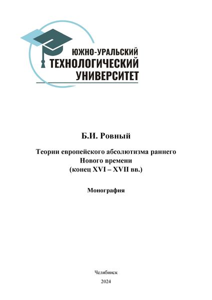 Ровный, Б. И. Теории европейского абсолютизма раннего Нового времени (конец XVI – XVII вв.) : монография / Б. И. Ровный. — Челябинск : Южно-Уральский технологический университет, 2024. — 148 c. — ISBN 978-5-6050860-1-7. — Текст : электронный // Цифровой образовательный ресурс IPR SMART : [сайт]. — URL: https://www.iprbookshop.ru/136681.html (дата обращения: 19.02.2024). — Режим доступа: для авторизир. пользователей