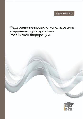Федеральные правила использования воздушного пространства Российской Федерации. — Саратов : Вузовское образование, 2024. — 56 c. — ISBN 978-5-4487-0949-4. — Текст : электронный // Цифровой образовательный ресурс IPR SMART : [сайт]. — URL: https://www.iprbookshop.ru/137353.html (дата обращения: 15.03.2024). — Режим доступа: для авторизир. пользователей