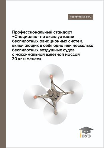 Профессиональный стандарт «Специалист по эксплуатации беспилотных авиационных систем, включающих в себя одно или несколько беспилотных воздушных судов с максимальной взлетной массой 30 кг и менее». — Саратов : Вузовское образование, 2024. — 28 c. — ISBN 978-5-4487-0956-2. — Текст : электронный // Цифровой образовательный ресурс IPR SMART : [сайт]. — URL: https://www.iprbookshop.ru/137354.html (дата обращения: 15.03.2024). — Режим доступа: для авторизир. пользователей