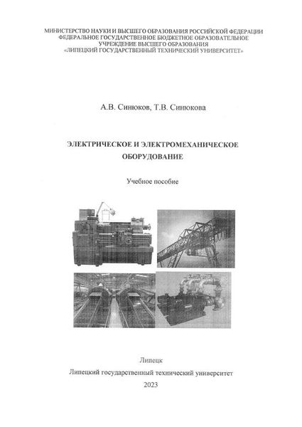 Синюков А.В. Электрическое и электромеханическое оборудование : учебное пособие / Синюков А.В., Синюкова Т.В.. — Липецк : Липецкий государственный технический университет, ЭБС АСВ, 2023. — 80 c. — ISBN 978-5-00175-239-4. — Текст : электронный // Цифровой образовательный ресурс IPR SMART : [сайт]. — URL: https://www.iprbookshop.ru/137412.html (дата обращения: 15.12.2025). — Режим доступа: для авторизир. пользователей