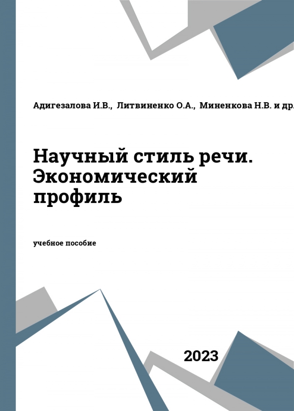Научный стиль речи. Экономический профиль : учебное пособие / И.В. Адигезалова [и др.].. — Воронеж : Воронежский государственный университет инженерных технологий, 2023. — 248 c. — ISBN 978-5-00032-657-7. — Текст : электронный // Цифровой образовательный ресурс IPR SMART : [сайт]. — URL: https://www.iprbookshop.ru/137488.html (дата обращения: 15.12.2025). — Режим доступа: для авторизир. пользователей